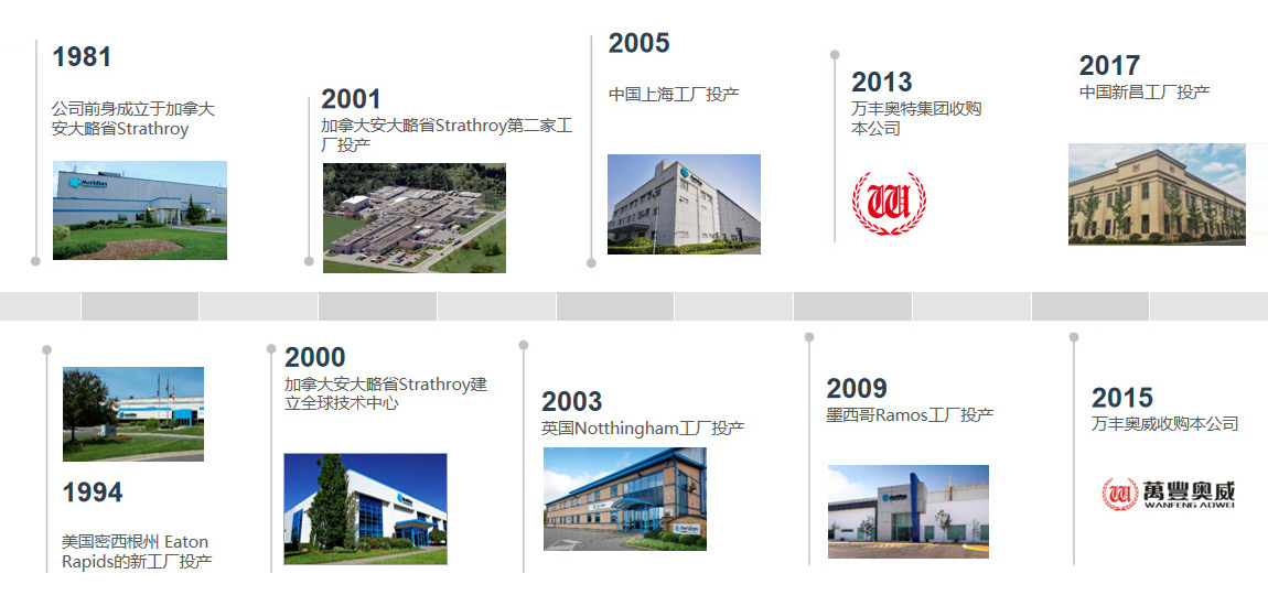 公司自1981年在加拿大安大略省建厂以来,跟随客户的全球化步伐,不断在世界各地增加新的产能,以便为客户提供更优质的本地化配套服务。